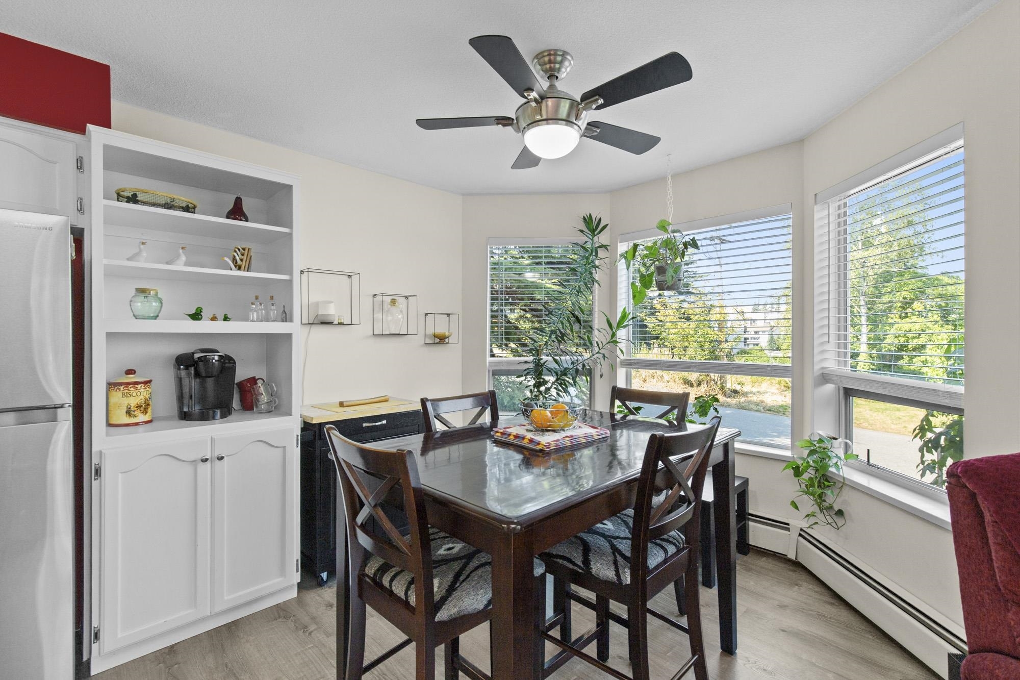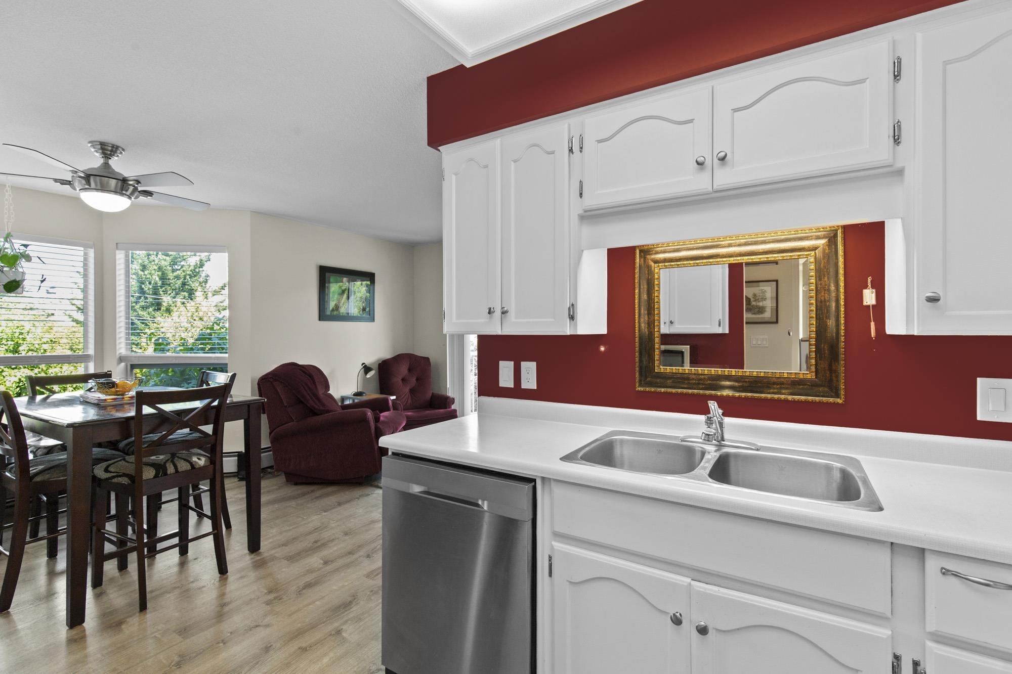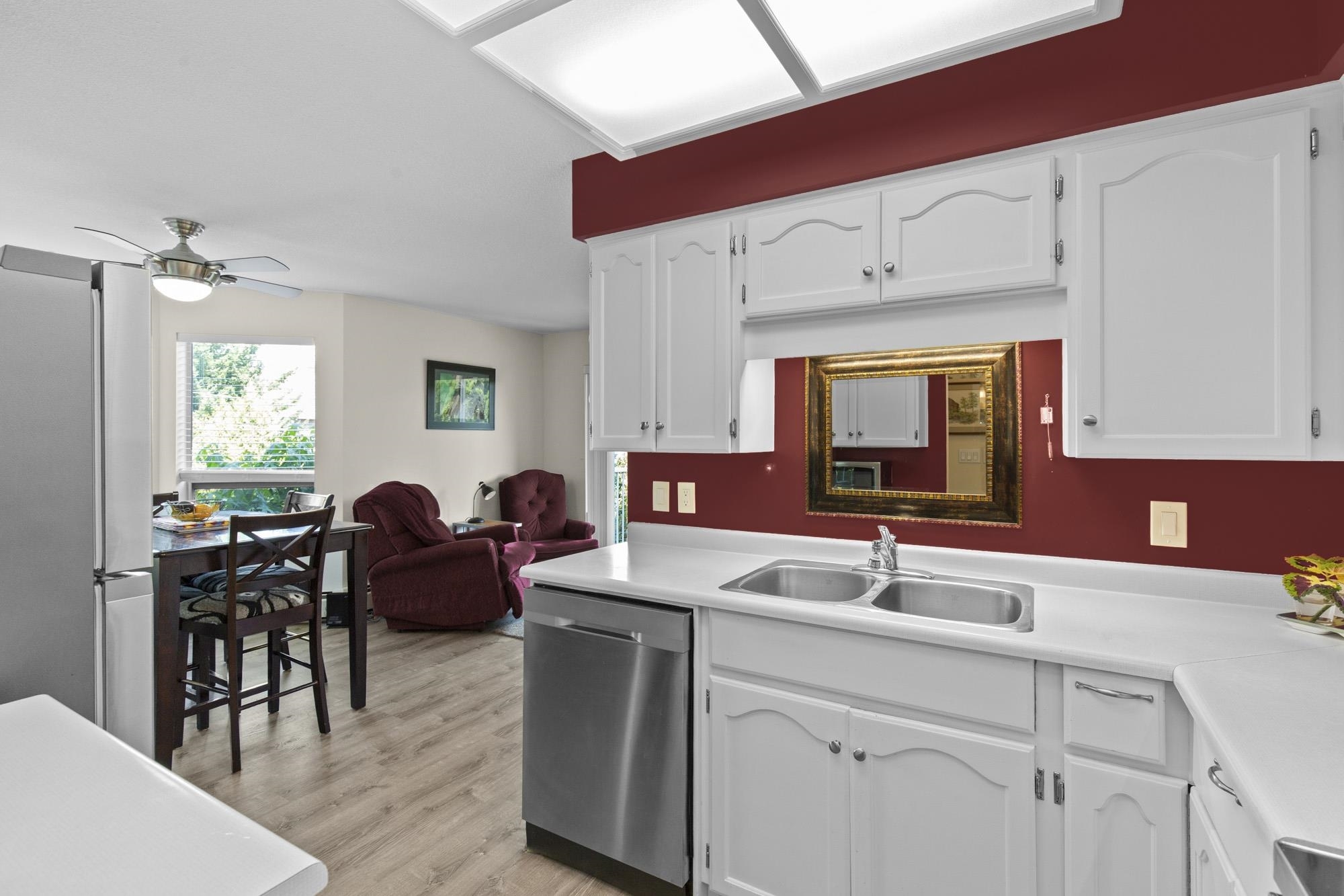 Bright, spacious, First Floor Corner unit in Cypress Park! Beautifully updated 2bd, 2bth offering over 1,200 sqft of comfortable living. Brand new vinyl flooring throughout, Bright layout, windows on multiple sides that flood the space with natural light. Private deck, tucked on the quiet side, a perfect spot to unwind. Impressive size primary Bedroom with full ensuite, second space off kitchen that can be used as sitting room, separate laundry room w/ added storage, & Built in AC. Thoughtfully designed with comfort in mind! Part of a robust 55+ community w/ amenity, community room, games room w/ pool table & exercise equipment, guest suite and workshop in one of Abbotsford’s most convenient locations. 1 secure parking stall (+ more spots available) storage locker, HW incl. No pets.
